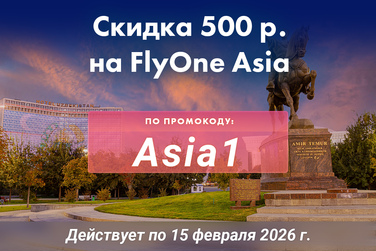 Действует на все рейсы FlyOne Asia,
